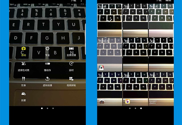 在拍照方面,Galaxy Note7对拍照界面进行了小幅度升级,增加了拍照界面内的手势操作,左右滑动可以切换不同的模式以及滤镜,上下滑动则是切换前后置摄像头。
